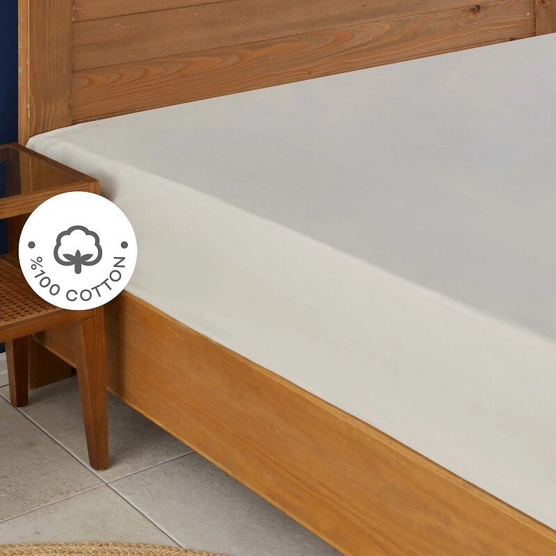 Nautica Home Beige Διπλό Σεντόνι 100% Βαμβακερό Με Λάστιχο