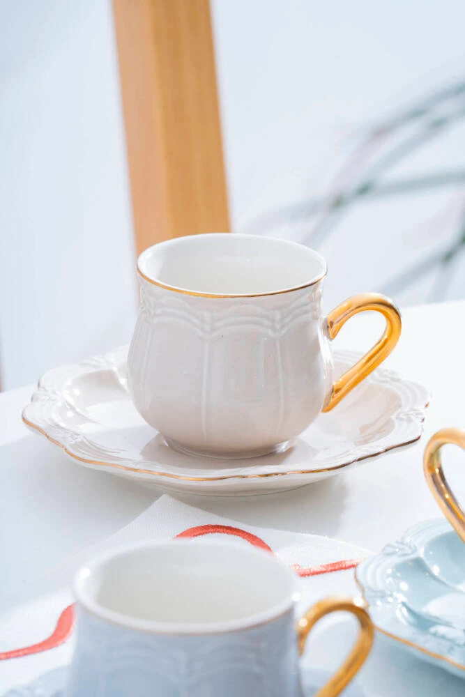 Σετ φλιτζανιών καφέ Attis 6 ατόμων, κατασκευασμένο από ποιοτική πορσελάνη. Περιλαμβάνει 6 φλιτζάνια καφέ χωρητικότητας 90 cc και 6 αντίστοιχα πιατάκια. Ιδανικό για καθημερινή χρήση αλλά και για προσεγμένο σερβίρισμα, προσφέροντας ανθεκτικότητα και διαχρονική αισθητική.