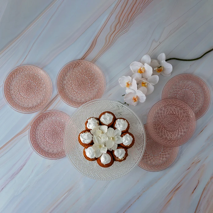 Karaca Dantel Pink White Σετ Κέικ 7Τμχ