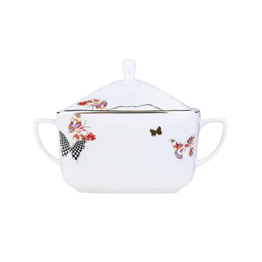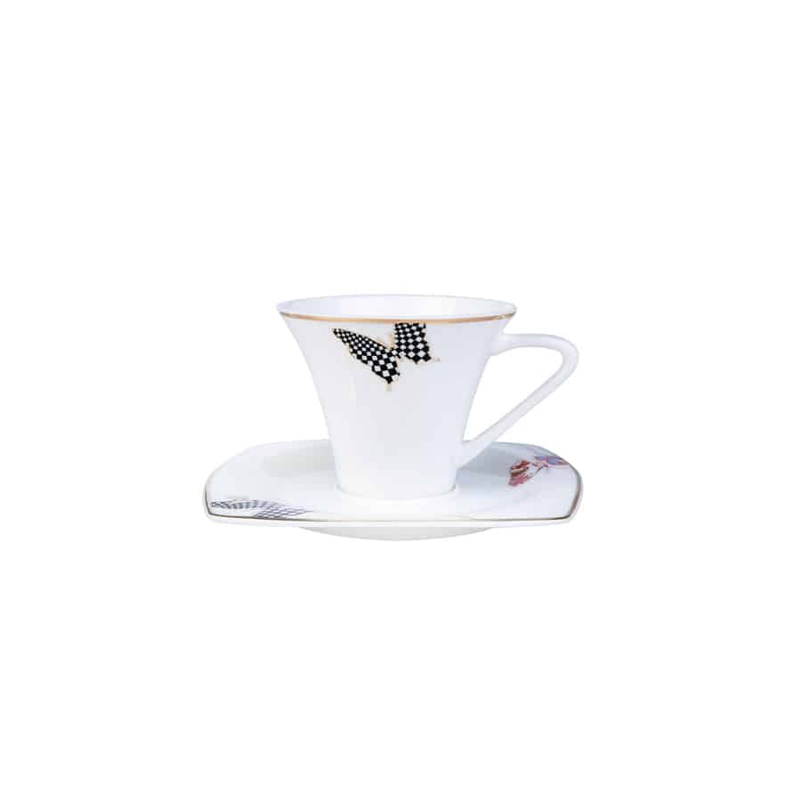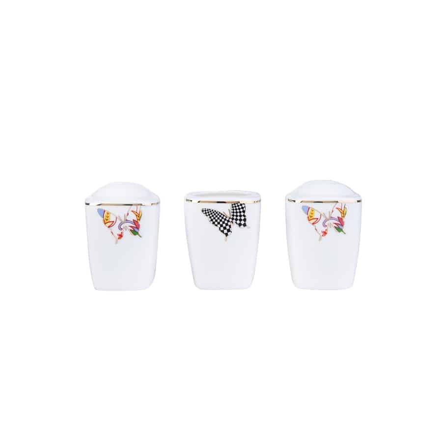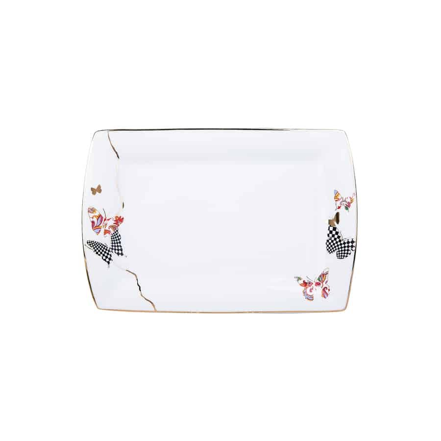 - Τα τετράγωνα σχέδια διαθέτουν υπέροχες πολύχρωμες πεταλούδες με κομψό μοτίβο πάνω τους. Αυτές οι πεταλούδες τοποθετούνται τυχαία στα πιάτα.