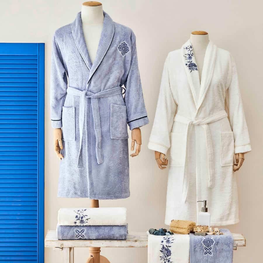 Karaca Home Clement Offwhite – Bamboo Family Σετ Μπουρνούζια Με Μπλε Κέντημα