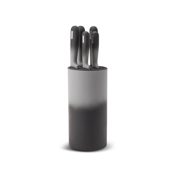 Κοφτερό, εργονομικό και λειτουργικό… Το σετ μαχαιριών Karaca Moonlight Round έχει 5 μοντέλα μαχαιριών, το καθένα πιο όμορφο και αιχμηρό από το άλλο, όπως ξεφλούδισμα, κοπή, ψωμιού και μαχαίρια σεφ. Χάρη στη δομή του από ανοξείδωτο χάλυβα, προσφέρει υγιεινή και μακροχρόνια χρήση. Με την κομψή βάση του, εξοικονομεί χώρο στον πάγκο σας. Εγγυάται για 2 χρόνια.