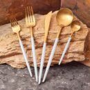 - Θα λατρέψετε το σχέδιο του σετ μαχαιροπήρουνων Karaca Lydia 60 Piece Black Boxed… Τα μακριά, λεπτά χερούλια είναι μαύρα. Τα μέρη του πιρουνιού, του κουταλιού και του μαχαιριού έχουν χρυσαφί χρώμα και έχουν μεγάλη αρμονία με το μαύρο. Αποτελείται από ειδικά κουτάλια και μαχαιροπίρουνα που χρησιμοποιούνται για σέρβις φαγητού, υπηρεσία γλυκού και υπηρεσία τσαγιού. Μπορεί να φυλάσσεται στο ειδικό κουτί του όταν δεν χρησιμοποιείται ή όταν επιθυμείται να διατηρηθεί ως προίκα. Όταν προετοιμάζετε ιδιαίτερες γεύσεις για τους σημαντικούς καλεσμένους σας, μπορείτε να χρησιμοποιήσετε αυτό το σετ κατά τη φάση της παρουσίασης. Όταν χρησιμοποιείται με ποιοτικά και κομψά σετ δείπνου όπως το ίδιο, μετατρέπει τις τραπεζαρίες σε τραπέζι επισκεπτηρίου.