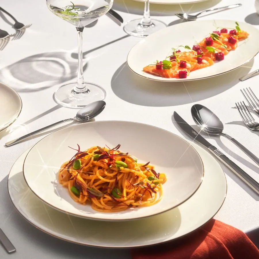 Karaca Nil Gold 84τμχ. Το σετ μαχαιροπήρουνων τραβά την προσοχή με τη λάμψη του... Το προϊόν που έχει κομψό και αισθητικό σχεδιασμό, διατηρεί το λαμπερό του χρώμα για μεγάλο χρονικό διάστημα. Μπορεί να χρησιμοποιηθεί με κλασικά και μοντέρνα σερβίτσια.