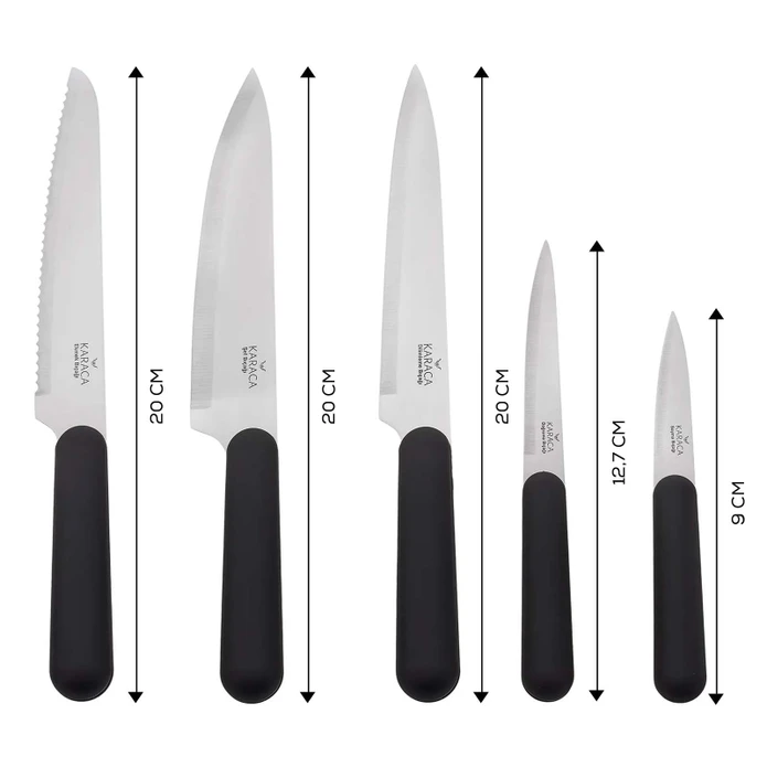 Κομψό, εργονομικό και λειτουργικό… Το σετ μαχαιριών Karaca Right έχει 5 μοντέλα λεπίδων, το καθένα πιο όμορφο και αιχμηρό από το άλλο, όπως ξεφλούδισμα, κοπή, κοπή ψωμιού και μαχαίρια σεφ. Αυτό το σετ μαχαιριών, που ξεχωρίζει με την ευκολία και την πρακτικότητά του, θα είναι ένα από τα πιο αγαπημένα προϊόντα της κουζίνας σας με την εργονομική λαβή και την άνετη χρήση του. Τα μαχαίρια σας αποστέλλονται με ειδική βάση για να παρατείνουν τη διάρκεια ζωής τους και να εξασφαλίζουν εύκολη αποθήκευση. Συνιστάται να πλένετε τα προϊόντα στο χέρι.