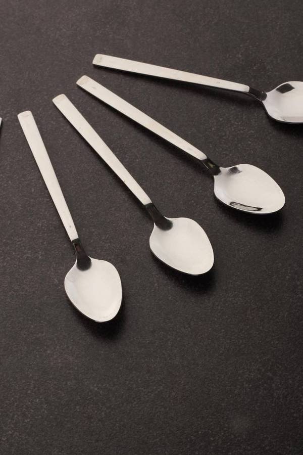 Σετ κουταλιού τσαγιού, που έχει σώμα από ανοξείδωτο, που δεν λερώνει, ανθεκτικά στις γρατσουνιές, τα οποία πλένονται στο πλυντήριο πιάτων.